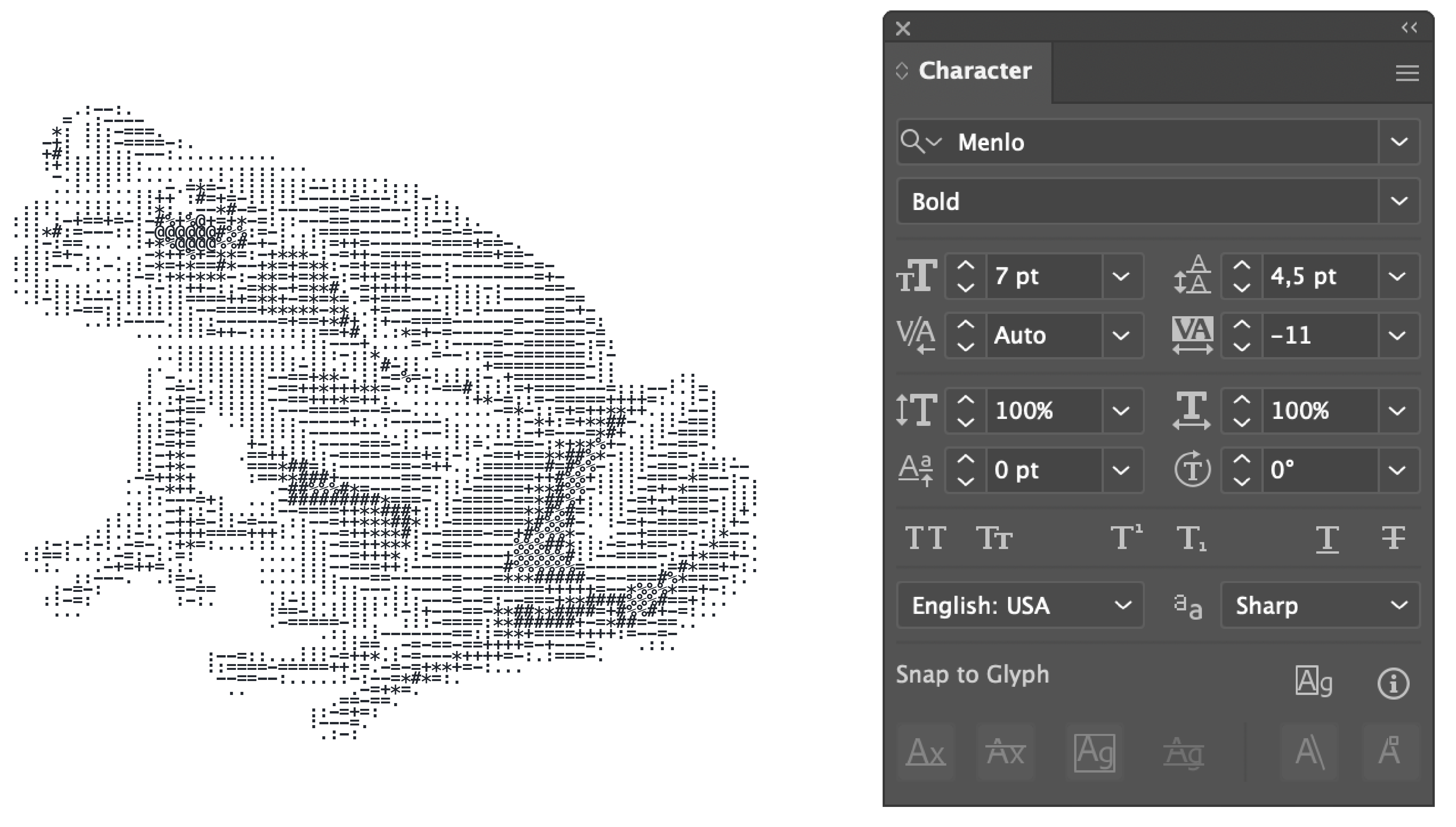 Examples here are made with online tool https://convertcase.net/ascii-art-generator/, text is pasted into Adobe Illustrator in Menlo Bold font.